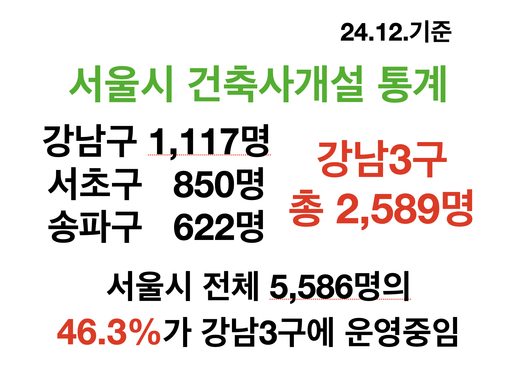혹시 사무소개업하려고 하시나요? 강남구에 하시기 바랍니다. 강남구에 사무소를 여는 이유가 있습니다. 강남 프리미엄을 가지는 것도 있고, 또 강남구에 일이 제일 많기 때문에 그렇습니다. 강북이나 지방일을 수주할 때도, 사무소가 강남구에 있다고 하면 그래도 좀 믿을만하다? 이런 생각을 하는 것 같더라구요. 통계 참조하세요.